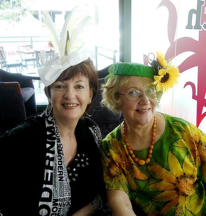 Club manger Suzanne Fairhall (left) and artist Leeka Gruzdeff show off their hats