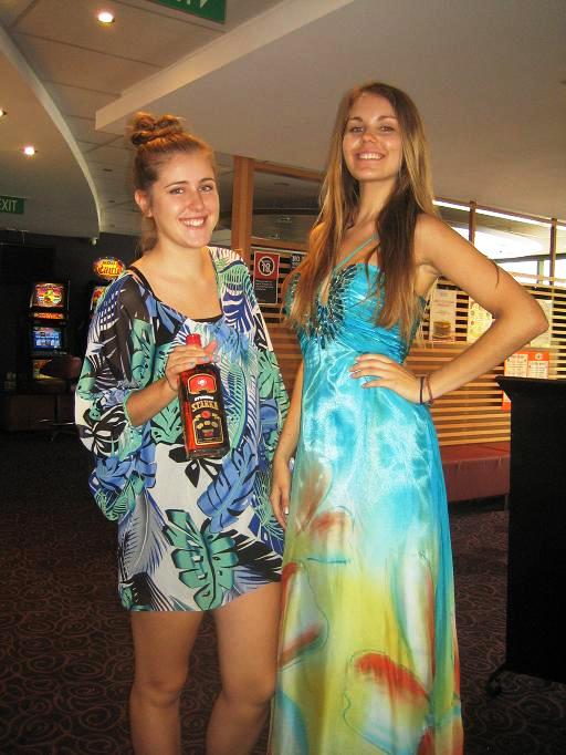 Nerija and Emilija model dresses by Alma Kavaliauskaitė Rountree and other raffle prizes.