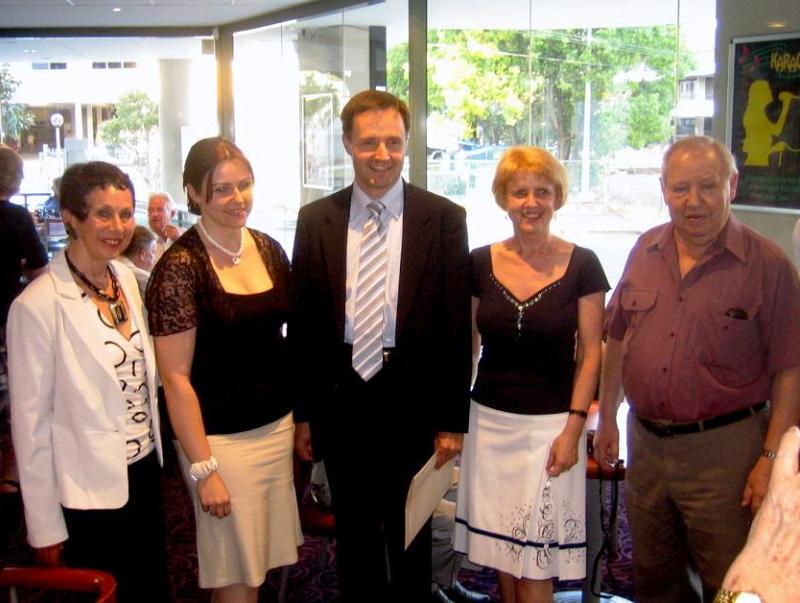 Ambassador Kamaitis with the Committee of the Canberra Lithuanian Community. (L-R) President Jonas Mockūnas, Barbara Šilinis, Ambassador Dainius Kamaitis, Sigutė Gailiūnaitė and Romas Katauskas. ![]()
