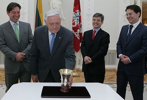 President Adamkus with the chalice presented by the Ortiz Brothers. Photo courtesy President of Lithuania website