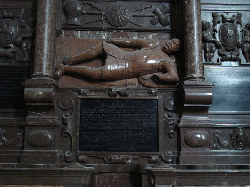 The tomb of Leonas Sapiega in St. Michael’ Church in Vilnius. The vandalism to the effigy on the tomb was caused by Russian soldiers during the invasion of Lithuania in 1655. Photo courtesy Wikipedia ![]()