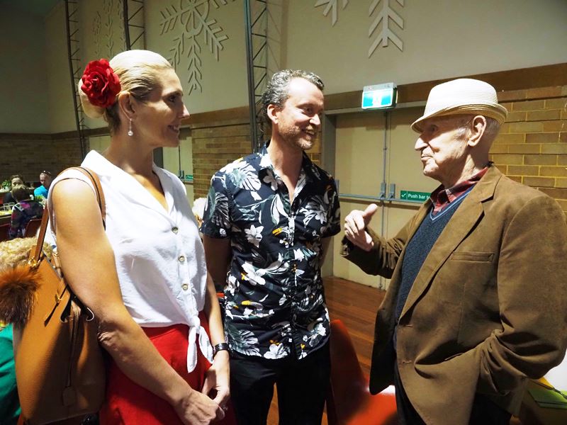 Rasa and Paulius chatting with Algis Ruša. Photo by Saulius Stepulis