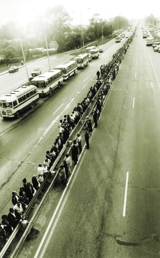 Lithuanians join hands in 1989. Photo courtesy Wikipedia